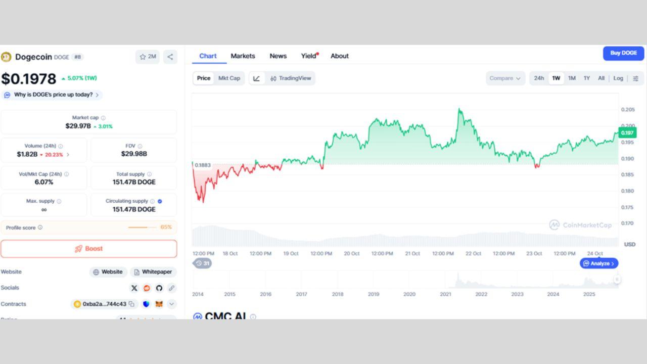 The historic Dogecoin surge saw an investment of $500 in 2021 make the now-valued 183,000 in the mania. DOGE is currently trading at 0.1958, which represents a relatively small 4.12 % gain in October but conceals a brutal 35 % annual loss and quells the chances of a similar burst this month. In the meantime, the presale crypto of Mandala Chain is a new opportunity on a stable platform and has enormous growth potential in the future.
