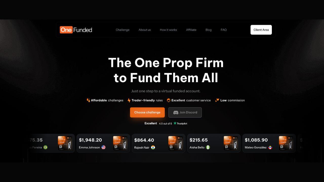 OneFunded is one of the best options for traders looking for flexibility across evaluation types and platform choices.