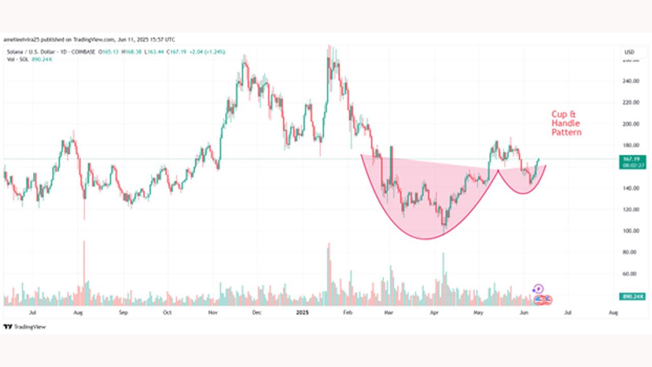 Solana Chart Shows Cup and Handle Pattern