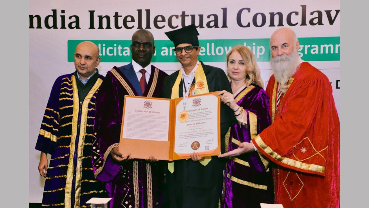 The honour was bestowed at the Indian Intellectual Conclave 2025, hosted at India Habitat Centre, New Delhi, where ambassadors from Russia, Jamaica, and Australia, along with Italian university delegates, paid tribute to Dr. KMR’s cross-domain genius.