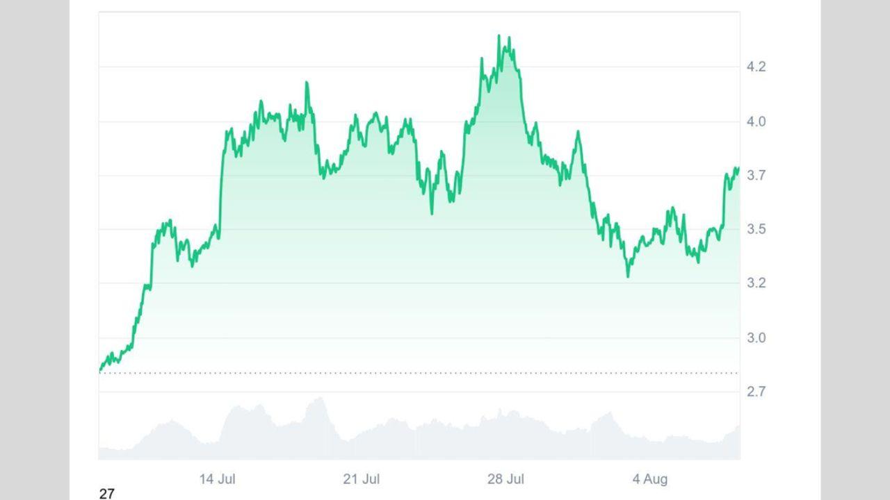 The SUI blockchain is up 30% in the past month, with SUI trading around $3.78 currently. This bullishness is probably caused by people trading over $14.2 billion worth of crypto on apps built on the SUI blockchain. This was the highest amount ever traded in a single month.