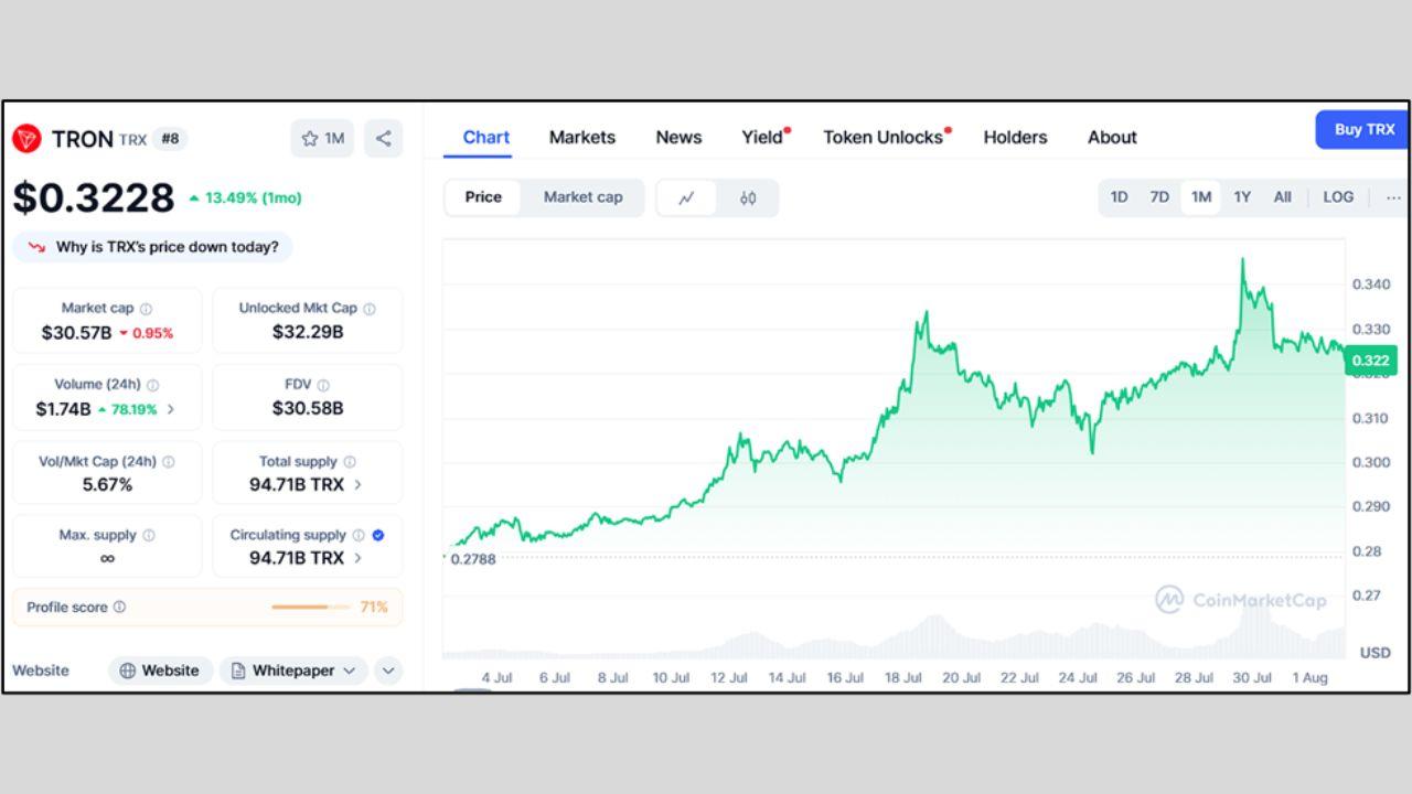 Founded by Justin Sun, Tron has built a reputation as a high-speed, low-cost blockchain platform ideal for decentralized applications (dApps) and entertainment content. With millions of active addresses and a growing DeFi footprint, TRX has become one of the more stable legacy altcoins in the market.