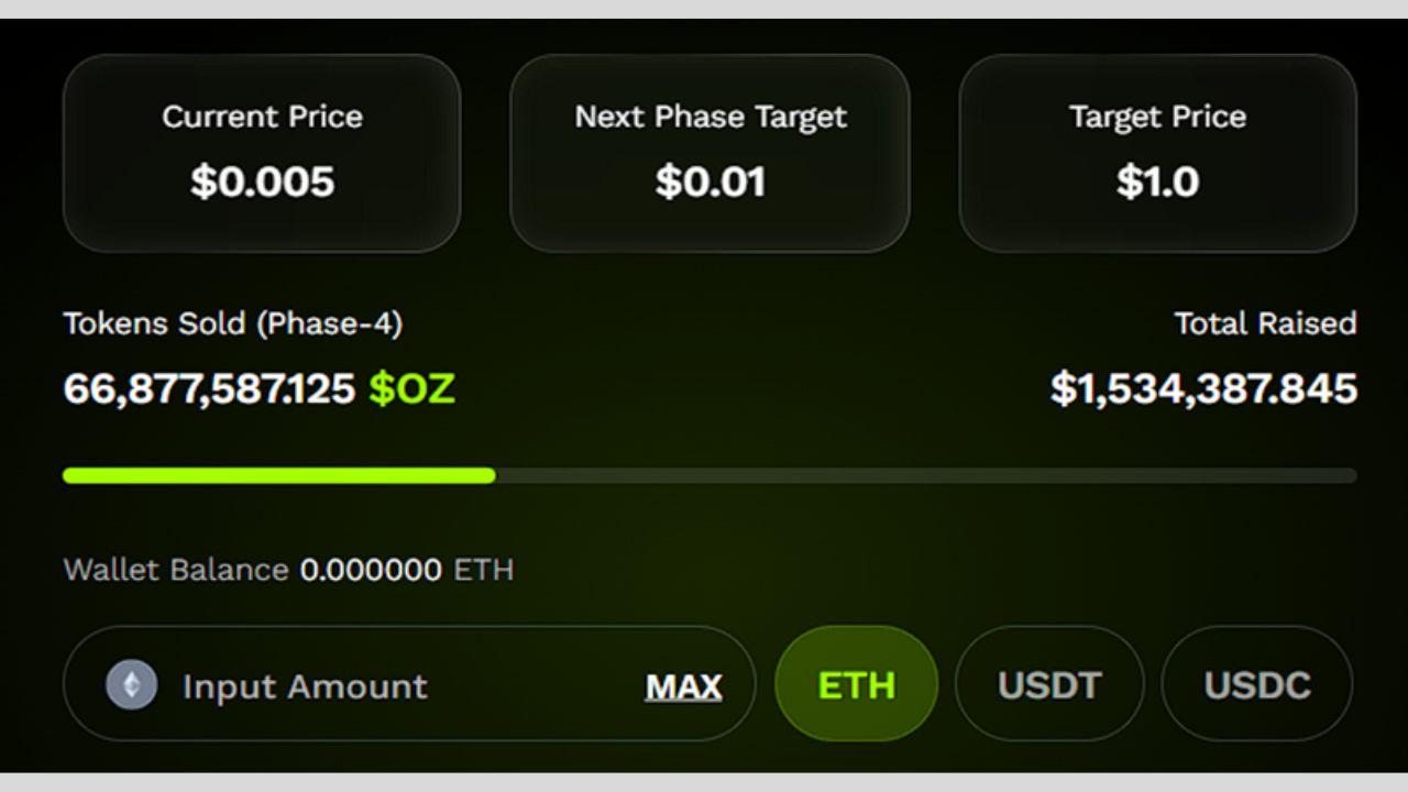 Currently in its 4th Ozak AI presale stage, Ozak AI is priced at just $0.005, making it one of the most affordable high-utility tokens available. It has already raised over $1.5 million and sold more than 66 million $OZ tokens, and investors are rushing in for a reason.