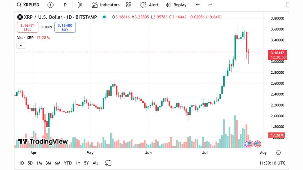 XRP has been a constant in the crypto universe for quite some time, with praise for its application in cross-border payments and victory in court over the SEC. Yet even traditional tokens are not exempt from investor mood swings. As of now, XRP has dipped below $3, now selling at $3.10, a decline of 9.92%, though it recorded an astronomical 146.97% increase in day-to-day trading volume to more than $17.19 billion.