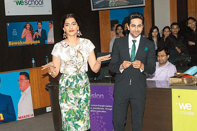 Sonam Kapoor and Ayushmann Khurrana visited Welingkar Institute in Matunga to promote their upcoming film Pic/Sayed Sameer Abedi
