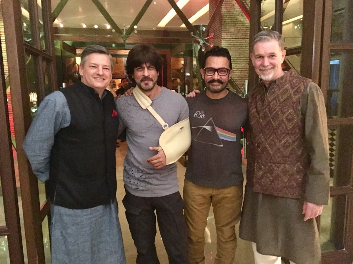 Bollywood superstars Shah Rukh Khan and Aamir Khan with global internet TV network Netflix's CEO Reed Hastings and his team. File Pic