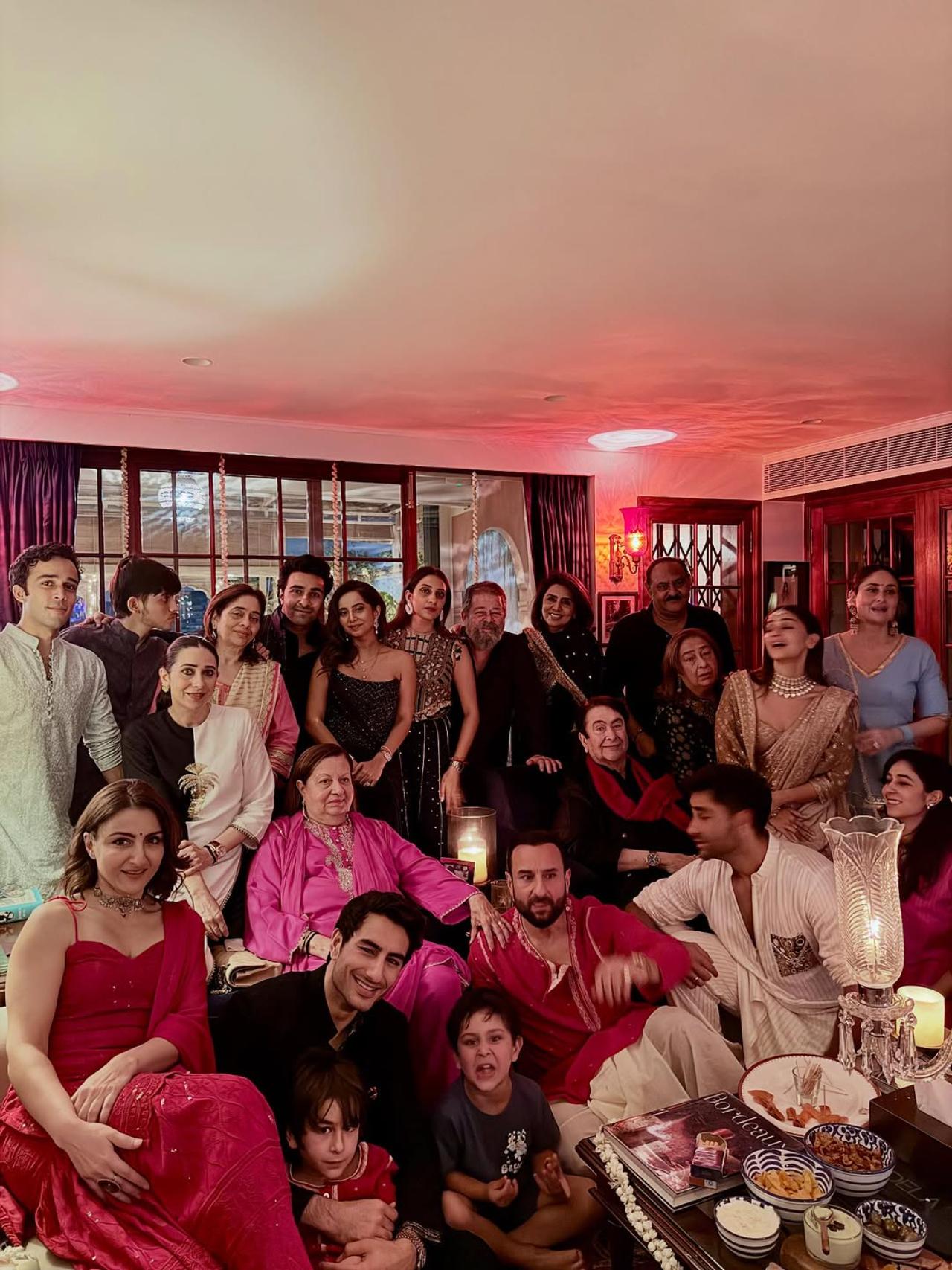 The Kapoor and Khan family came under one roof at Saif and Kareena's residence to celebrate day 1 of Diwali. Soha Ali Khan used social media to drop sneak peeks from the festivities with her loved ones. The photos uploaded by Soha on her Instagram included brother Saif Ali Khan, sister-in-law Kareena Kapoor Khan, Karisma Kapoor, Amrita Arora, husband Kunal Khemu and daughter Inaaya Naumi Khemu.