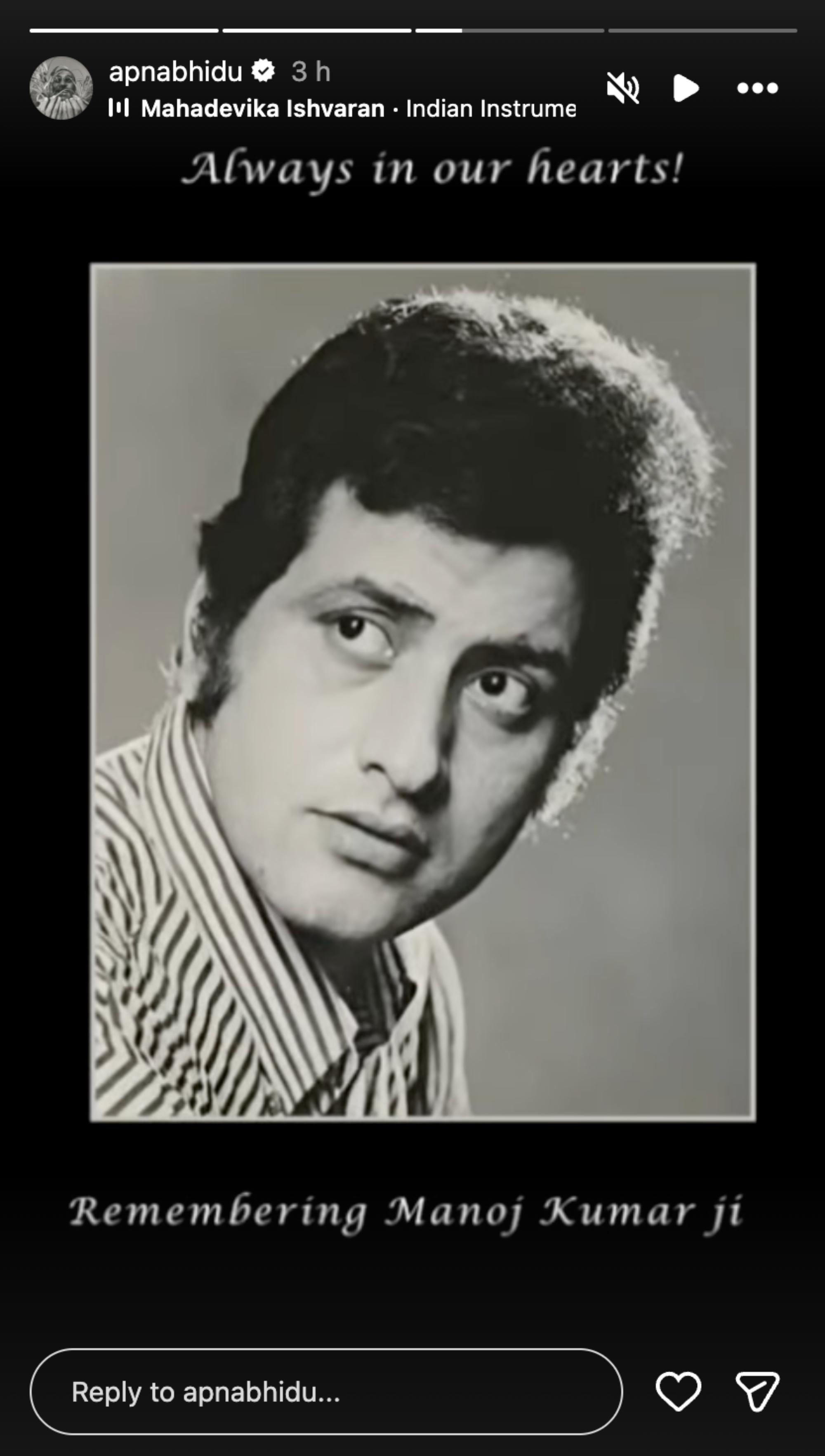 Paying his tribute, Jackie wrote: “Always in our hearts. Remembering Manoj Kumar Ji on his death anniversary.”