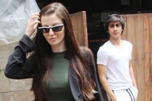 Nirvaan Khan opted for a white t-shirt, paired with grey joggers pants when clicked with father Arbaaz Khan and Giorgia Adnriani at a popular restaurant in Bandra, Mumbai.