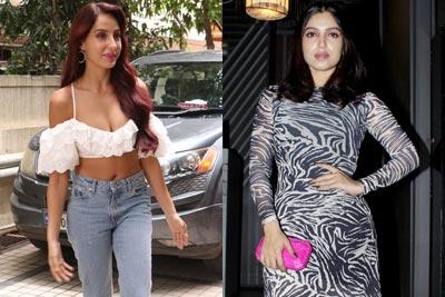 In picture: Nora Fatehi and Tulsi Kumar pose for the photographers in Andheri.