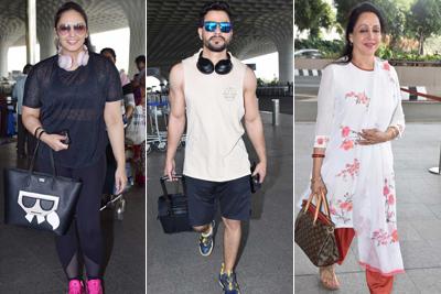 Dreamgirl Hema Malini was also spotted at Mumbai airport. The veteran actress was all smiles while being clicked by the paps.