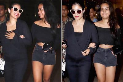 Mother-daughter duo Kajol and Nysa Devgan were clicked at Mumbai airport, over the weekend. Twinning in black, the duo seemed to be in a complete cheerful mood, while heading to their car outside the airport. (All photos/Datta Kumbhar and Yogen Shah)