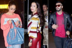 Malaika Arora was spotted with Arjun Kapoor at the Mumbai airport. The Chhaiya Chhaiya girl opted for red leather pants, paired with striped sweater top as her airport look when clicked by the shutterbugs. All pictures/Yogen Shah