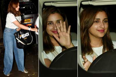 Parineeti Chopra dropped in to meet her sister Priyanka Chopra had her residence in Bandra, Mumbai. Priyanka who has been juggling between USA and India, was back in the town to attend The Sky is Pink wrap up party. All Pics/Yogen Shah