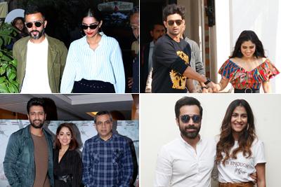 Sonam Kapoor opted for a striped shirt, paired with black wide-legged pants, and the actress completed her look with red lipstick and black retro shades. Anand Ahuja sported a casual attire to accompany his wife.