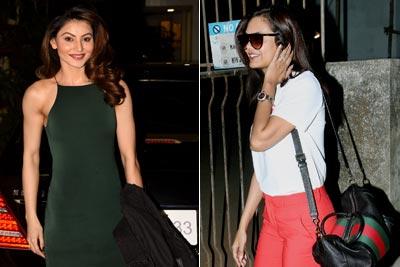 Urvashi Rautela was spotted at a preview theatre in Juhu, Mumbai. Urvashi looked ravishing in her bottle green skater dress which complimented with sports shoes.