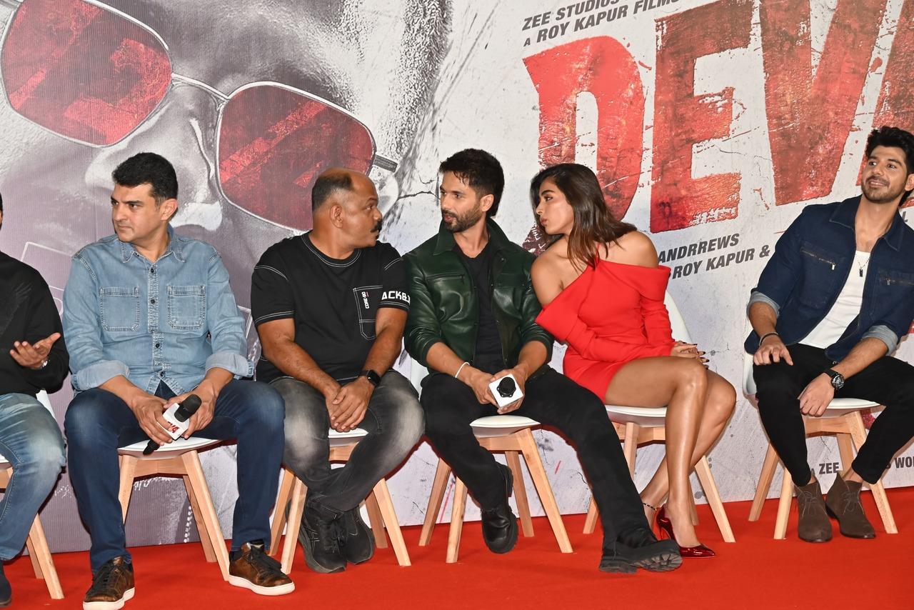 Shahid Kapoor and Pooja Hegde received a warm welcome by fans who danced for them at Deva trailer launch