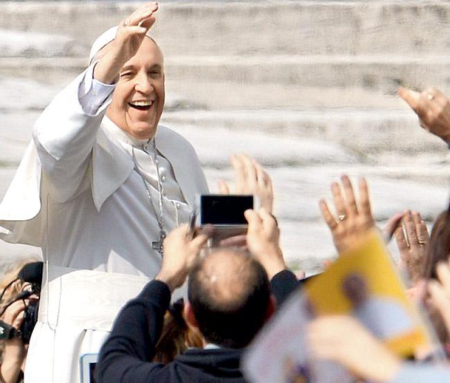 Russell Crowe (second from left) tried to meet with the Pope Francis (below) last Wednesday but was unsuccessful as the Vatican deemed his stardom to be too much of a disruption. pics/afp
