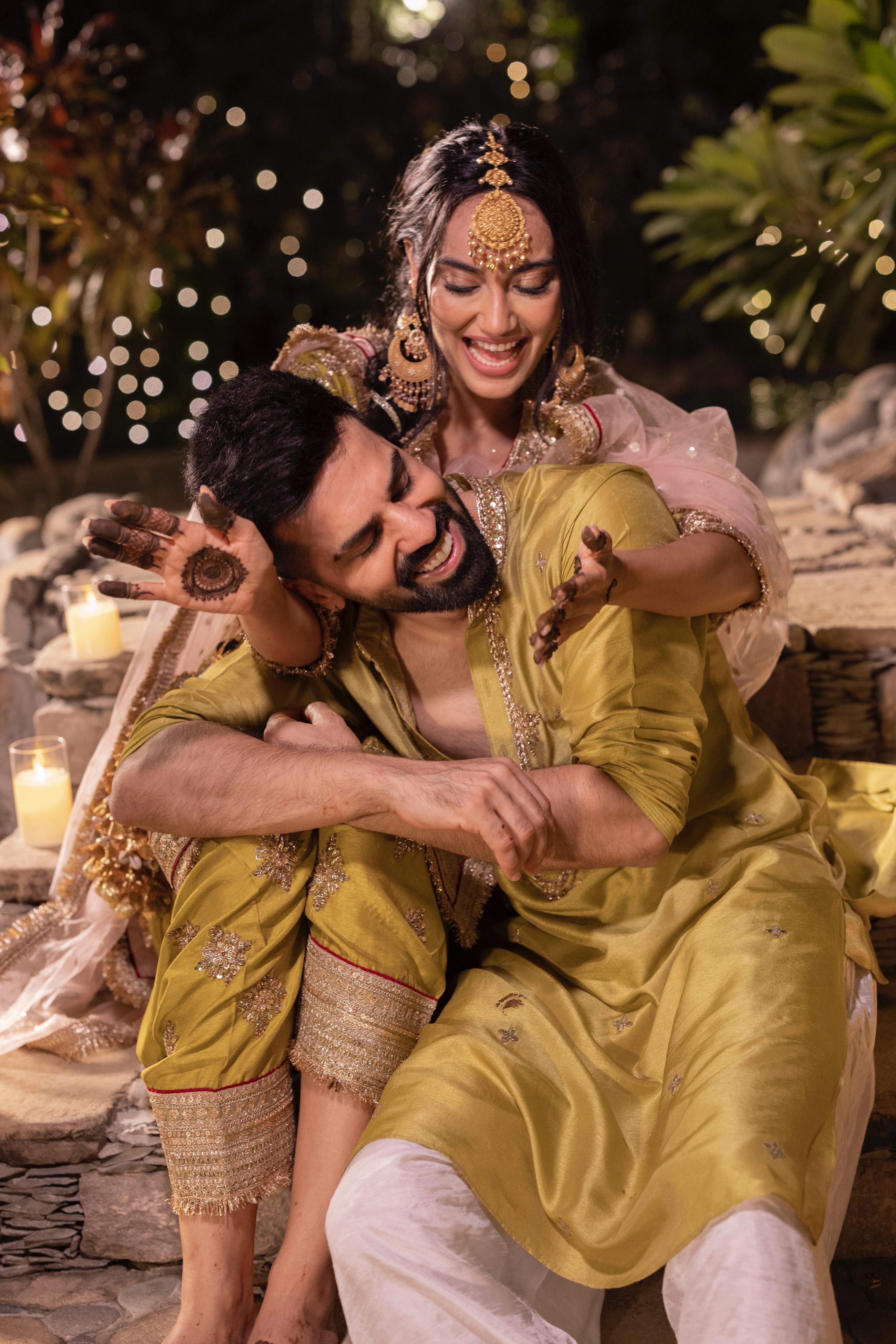While sharing the first set of pictures from their pre-wedding festivities, Surbhi wrote, "These roots run deep, carrying stories of sunshine and rain, resilience and grace. Sumit and I chose to begin our journey here, under nature’s sacred canopy, honoring the trees that stand tall and the five elements that keep us whole."