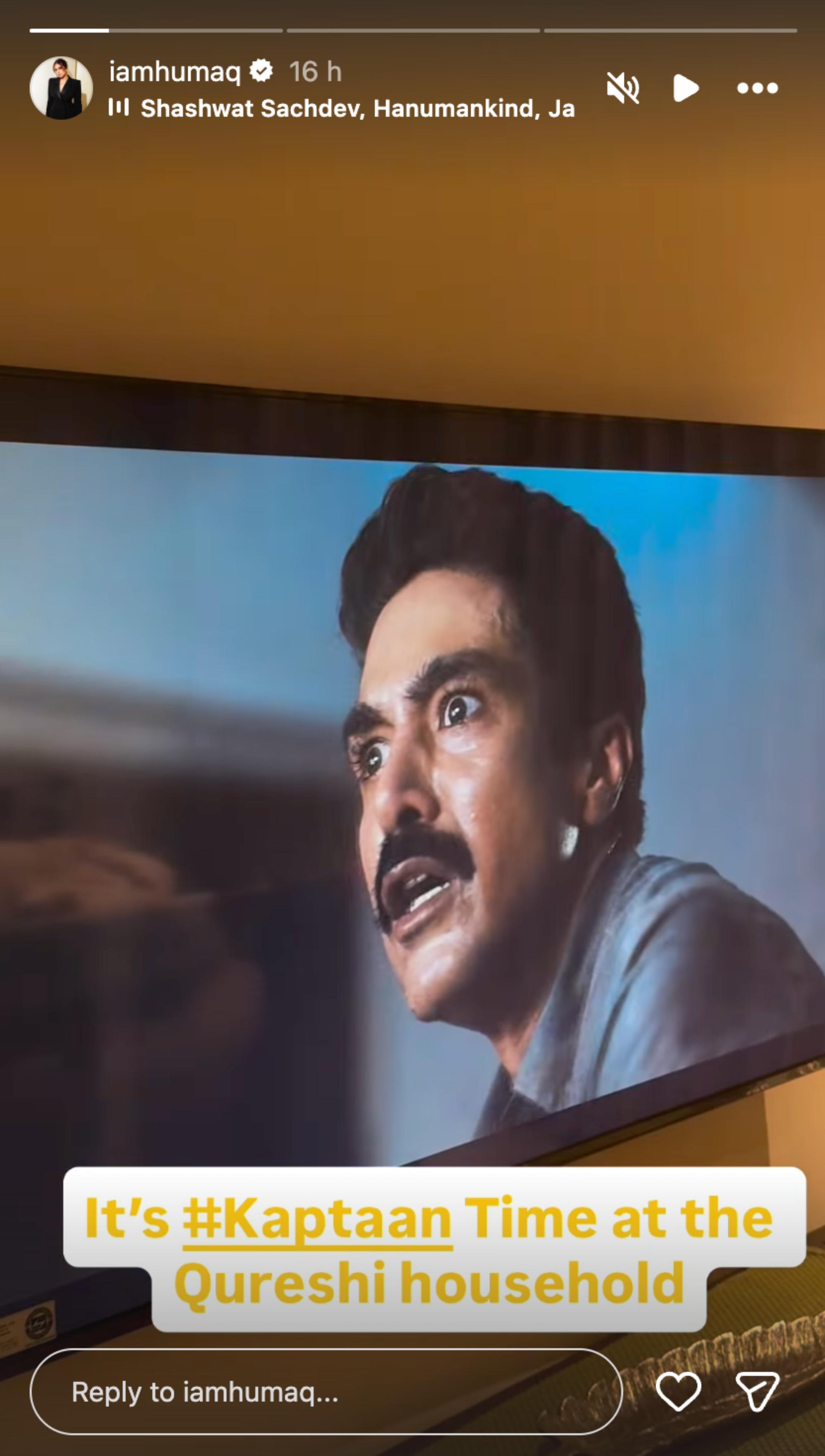 She wrote in the caption, “It’s Kaptaan time at the Qureshi household." In another story she wrote, "Saqib Saleem killed it Kaptaan. What a banger,” expressing her excitement and pride for her brother’s performance.