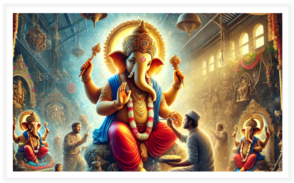 The birth of Lord Ganesha is believed to have happened when his mother, Goddess Parvati, carved an idol of a boy out of turmeric powder and breathed life into it, without letting her husband Lord Shiva know about it. According to Hindu mythology, Goddess Parvati created Ganesha from the sandalwood paste she used for her bath. She breathed life into him and set him to guard her while she bathed. When Lord Shiva, Parvati’s husband, tried to enter, Ganesha stopped him, unaware of who he was. This led to a fierce battle, during which Shiva beheaded Ganesha. Upon realising Ganesha's identity and Parvati’s grief, Shiva resurrected him by placing an elephant’s head on his body. This story is a central theme in many Ganesh Chaturthi celebrations in Karnataka, symbolising the birth of Ganesha and his rise as the remover of obstacles.