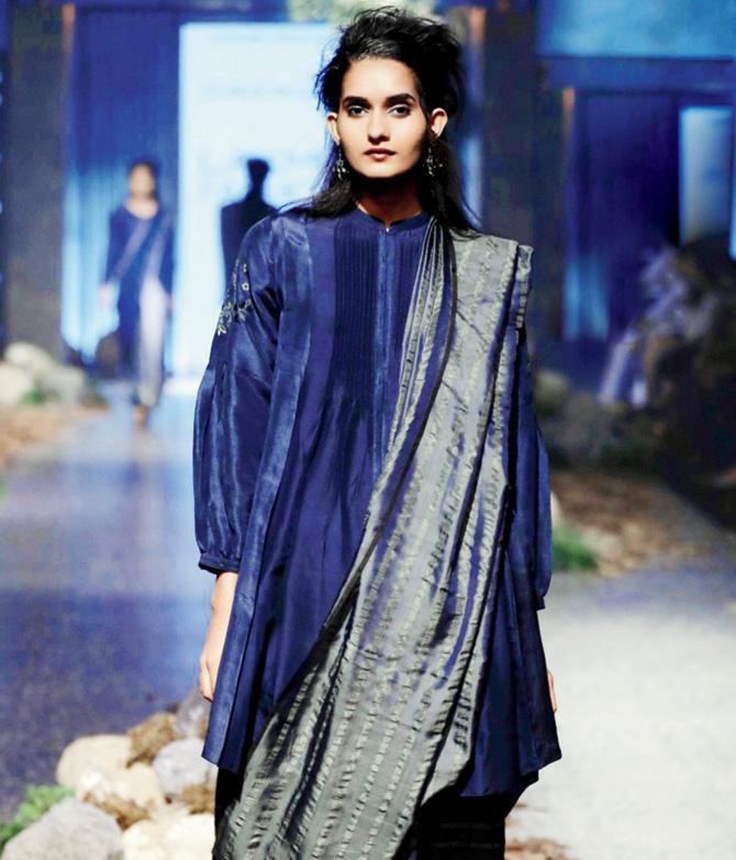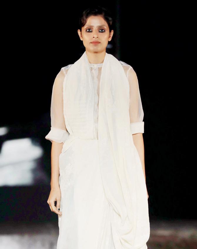Perfect for Mumbai, light layering in solid colours as seen at shows by Sanjay Garg (in pic) and Rara Avis won't leave you in a sweaty mess.