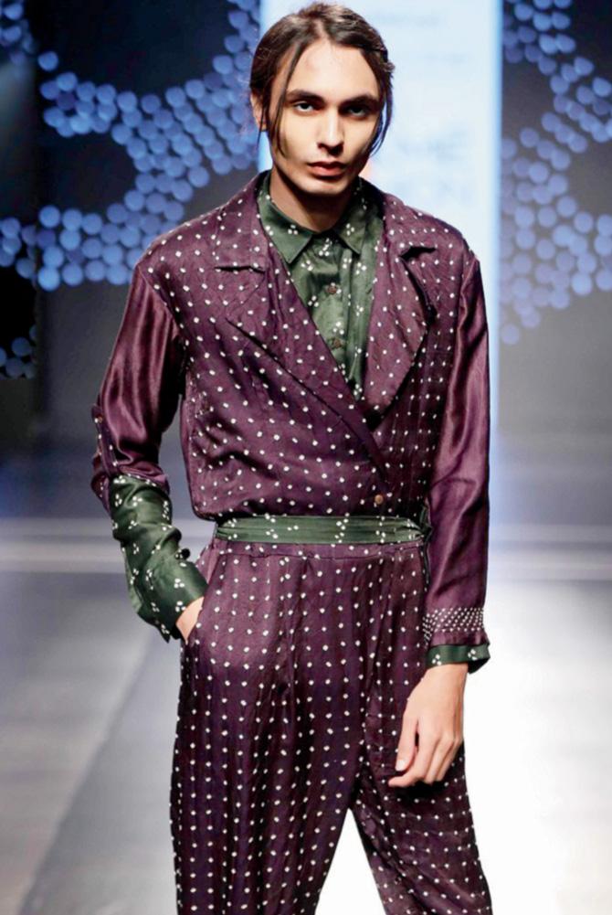 On jumpsuits (Pot Plant X Shohel Khatri) and crop tops and pants by Sunita Shankar, bandhani is no longer restricted to Gujarati weddings.
