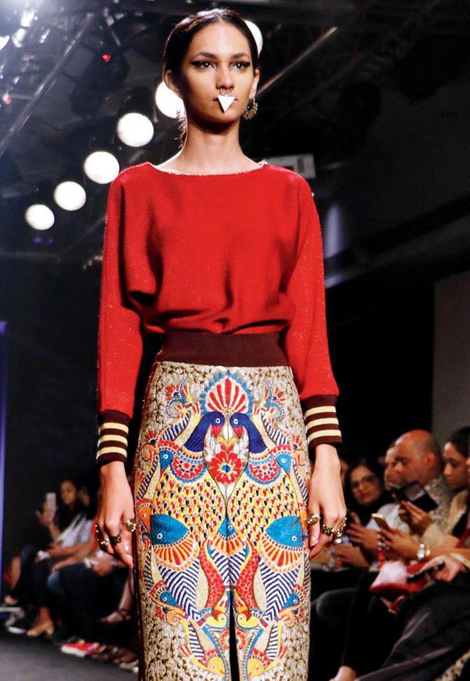 Florals are refusing to go out of style. This edition saw them in the form of bold, coloured embroidery in collections by Manish Malhotra (right), Ritu Kumar, Rahul Mishra and several others.
