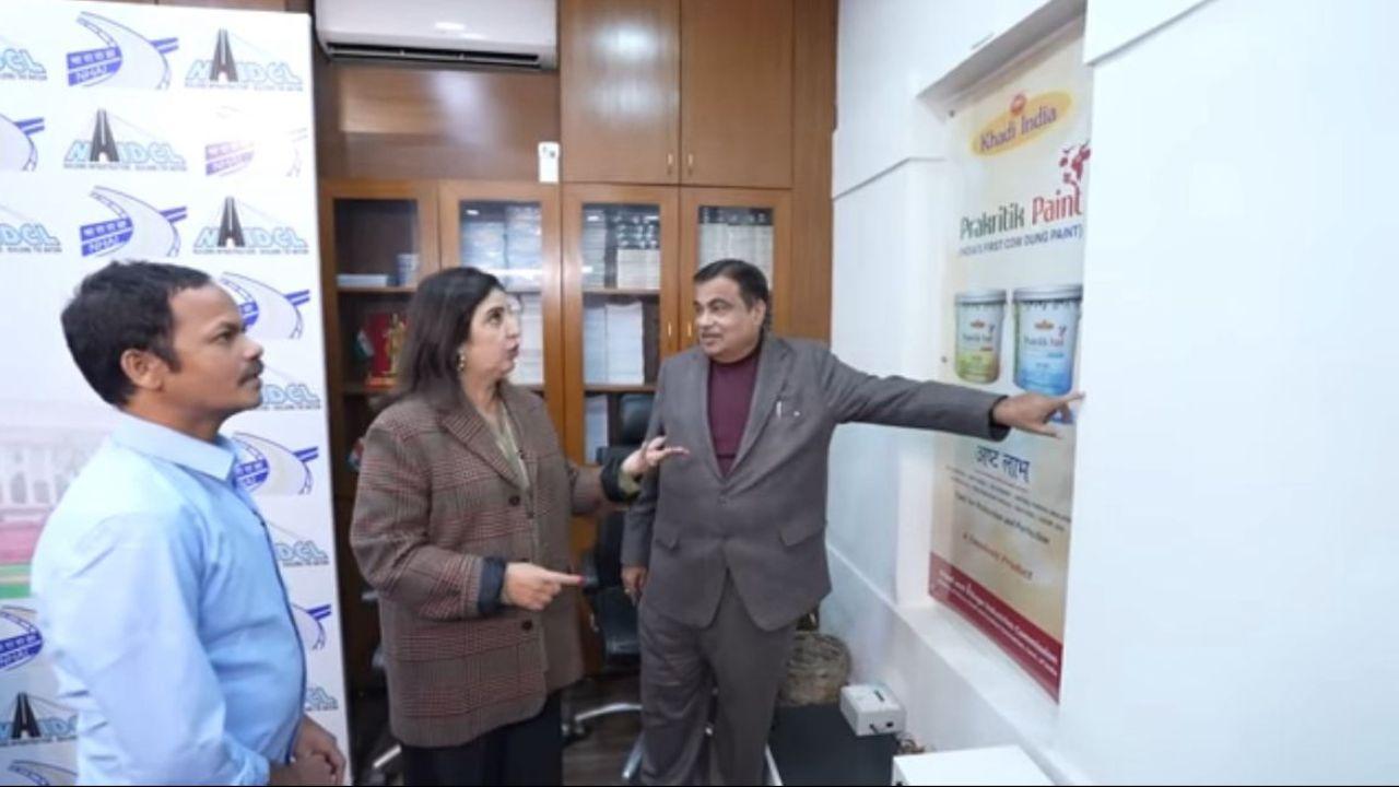 Interestingly, Gadkari's conference room has a wall painted using gobar (cow dung).