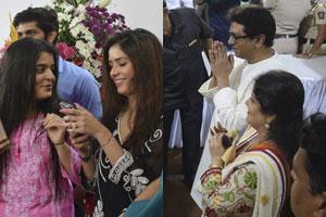 Raj Thackeray's daughter Urvashi (left) and to-be daughter-in-law Mitali capture memorable moments of the birthday celebrations of the MNS' chief Raj Thackeray at his Shivaji Park residence while son Amit (partially seen behind Urvashi) looks on, Pic/Ashish Raje