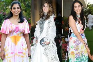 Shloka Mehta made heads turn in her colourful crop tops and palazzos. She left her hair open and wore minimal make-up. She arrived at the bash with two of her nieces.