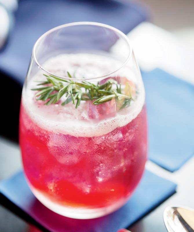 An Indian spin on the Whiskey Sour, this cocktail is exciting from the word go. It is a mix of Bourbon, home-made shikanji (North Indian-style lemonade) puree, sweet and sour mix, rose syrup, rose water and egg white. All this is garnished with some rosemary. "Indians love shikanji, and most of them like whiskey, too. I wanted to blend two strong but complementary flavours thAt add a natural woodiness and sweetness to the cocktail. Shikanji adds a greAt fragrance, especially when garnished with rosemary," says Taufeeq Shaikh, bartender, Estella.