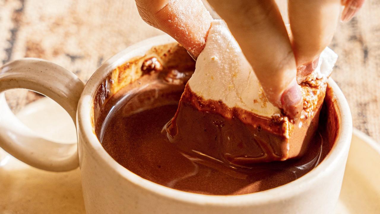 Add some lushness to your date with this thick, glossy, and chocolate-forward Hot Chocolate that comes topped with a marshmallow to turn your date sweeter.