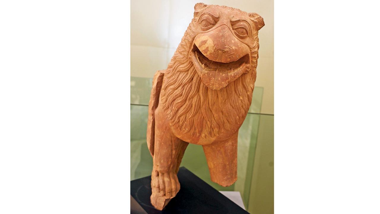 With gaping jaws, protruding teeth, the sandstone Kushan Lion, tracing its origins to Mathura, closely resembles the Winged Lion Capital now at the Victoria and Albert Museum, London.