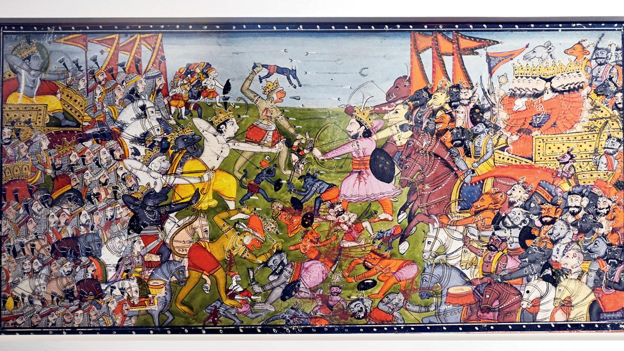 This Kangra work captures the chaos and dynamism of the climactic battle through a dense, but intensely detailed canvas.