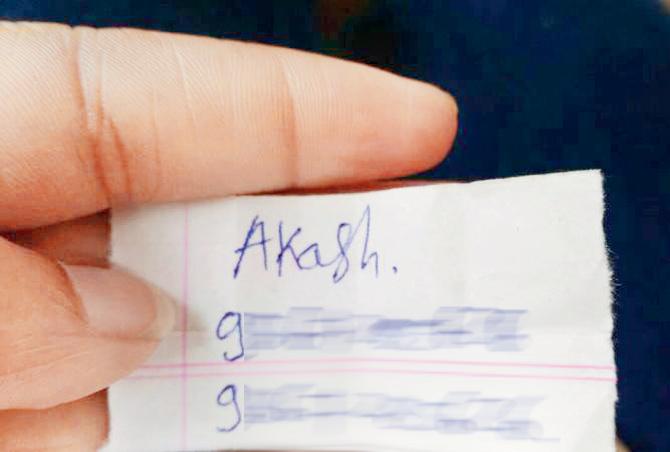 "When I took the cab, I realised that he had put some piece of paper in my bag. Meanwhile, I told my colleagues, mother and brother about the incident. The chit had his number on it. My colleague saved it to his WhatsApp profile."