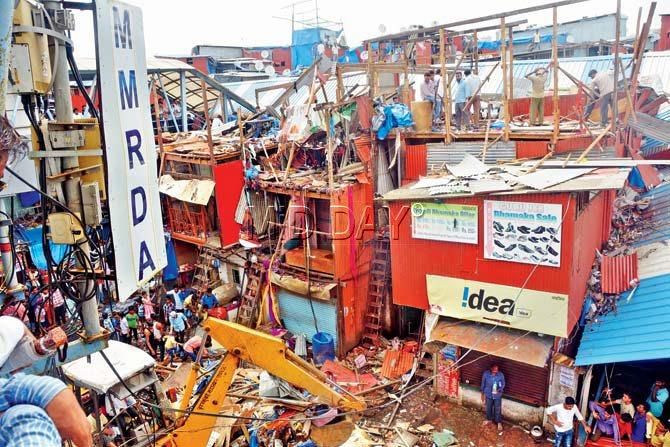 The civic body had last month ordered the demolition of 350 five-storey shanties and nearly 500 ground-plus-two/three slum tenements in the area. mid-day had on June 22 (right) reported that the illegal ‘high-rises’ were to be brought down soon.