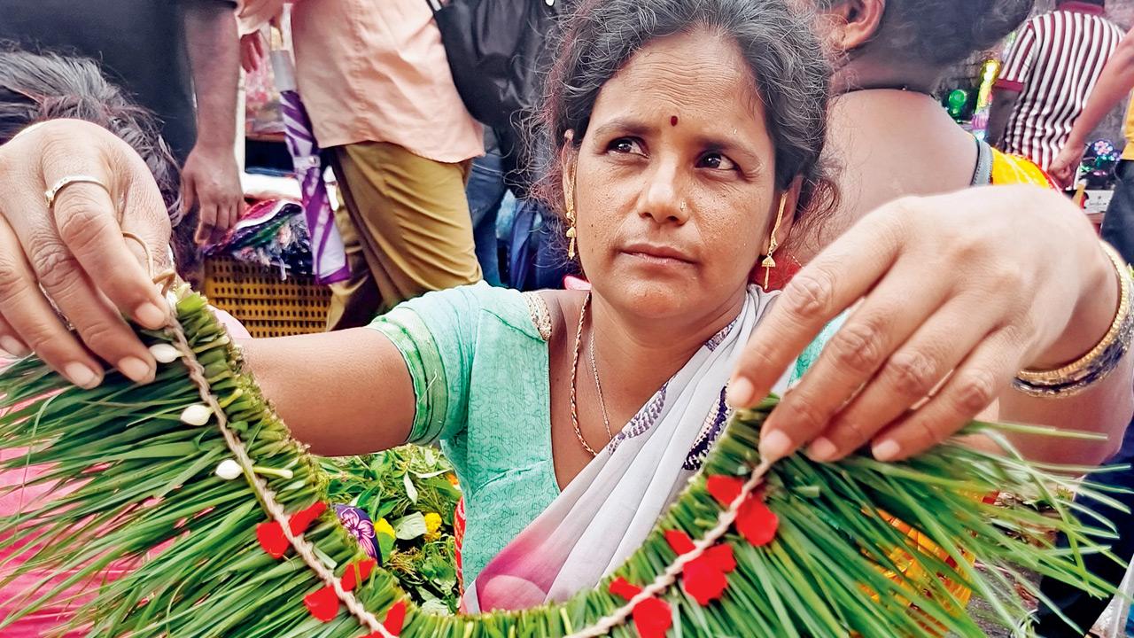 A vendor at a flower market shows off a durva mala. PIC/KIRTI SURVE PARADE