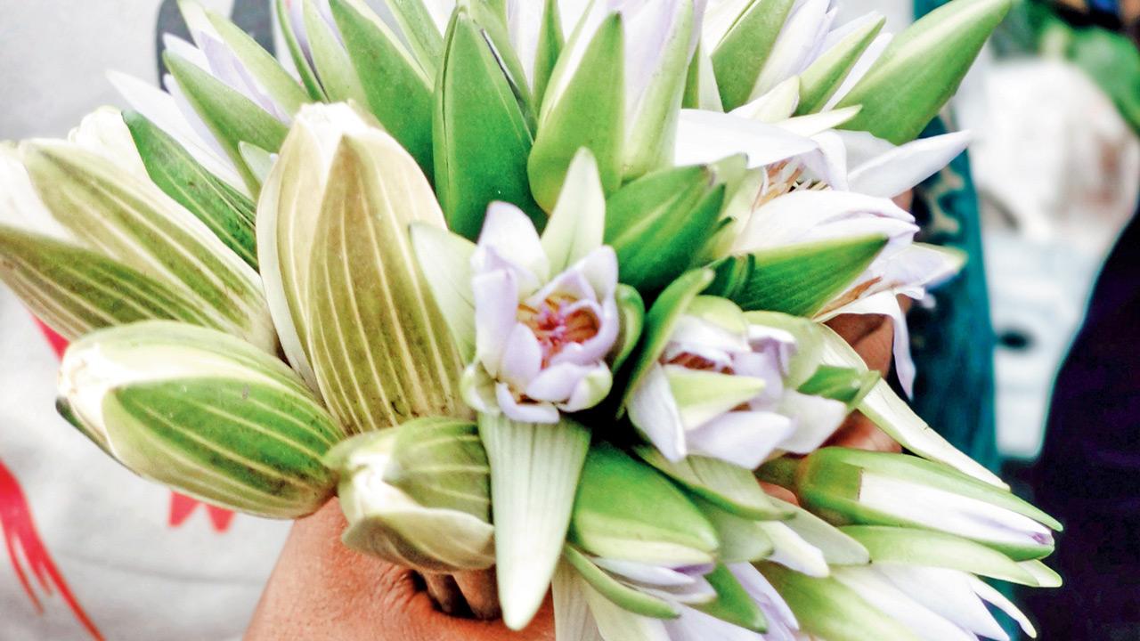 A shopkeeper shows off some Bethlehem flowers that are used during the Ganesh puja. PIC/KIRTI SURVE PARADE