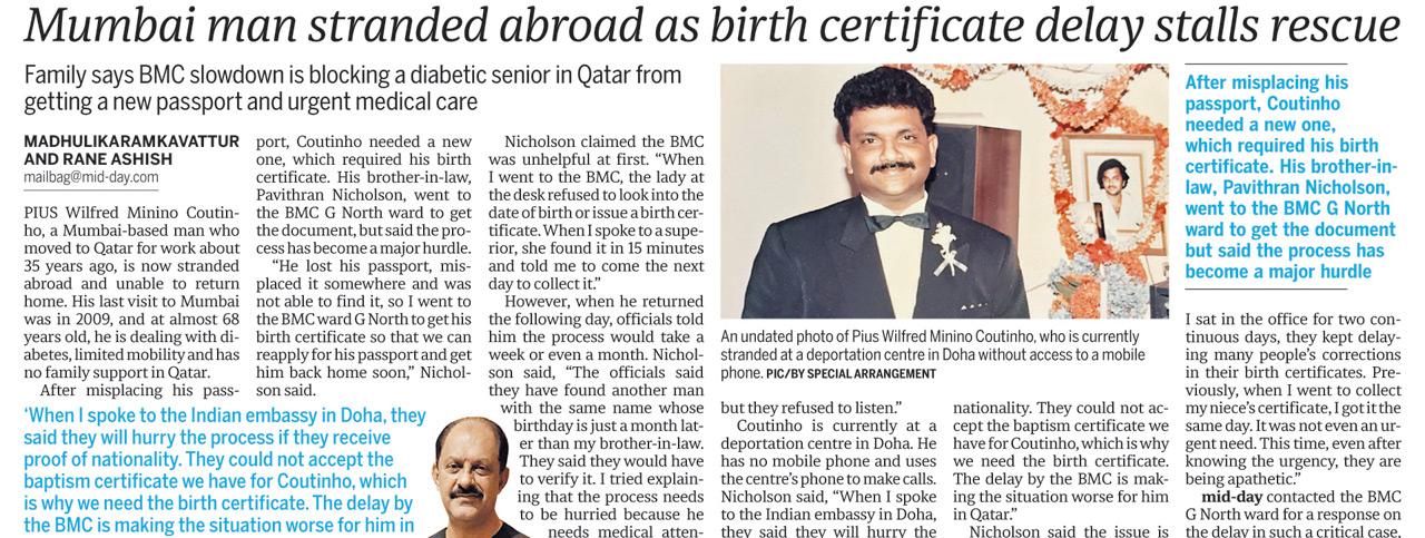 Mumbai man stranded abroad as birth certificate delay stall rescue