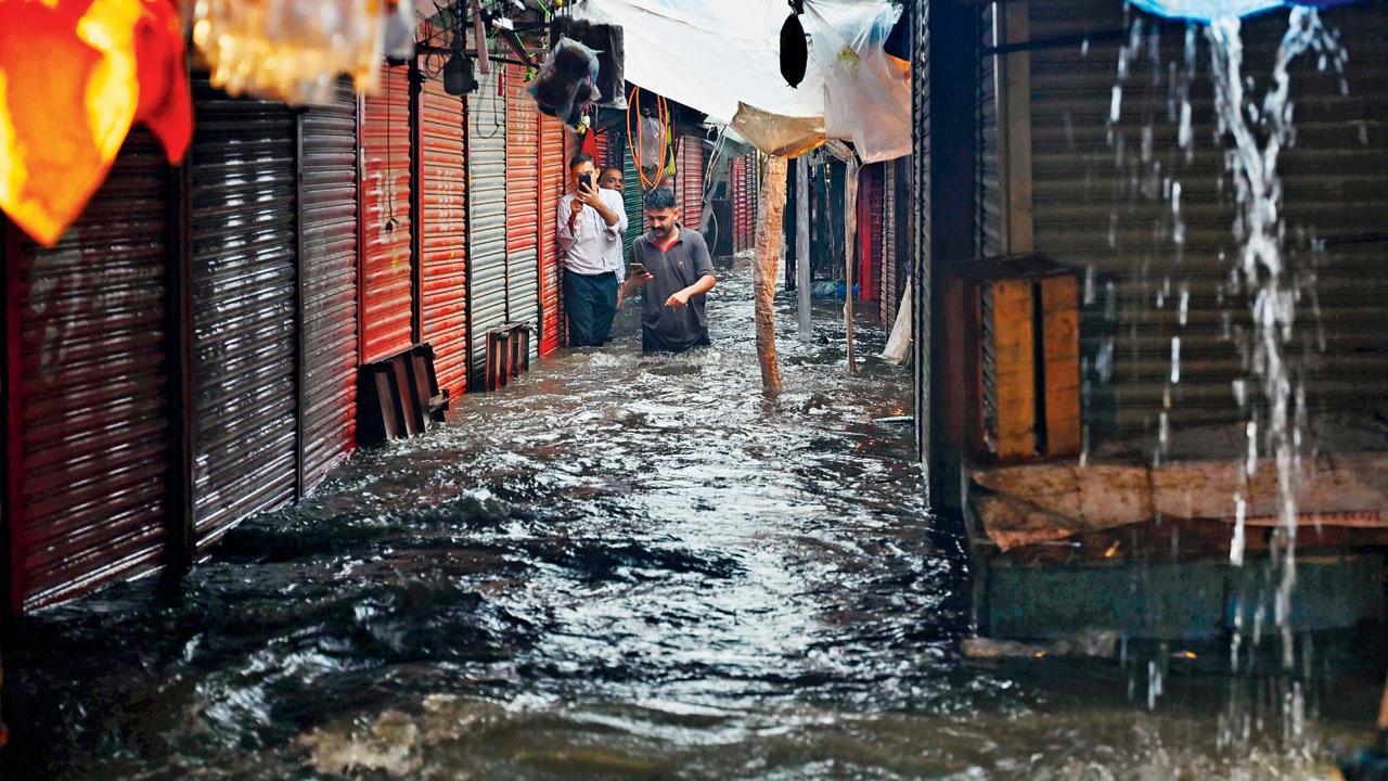 A shopkeeper seems resigned to fate after water floods his shop in Andheri (West). PIC/SATEJ SHINDE