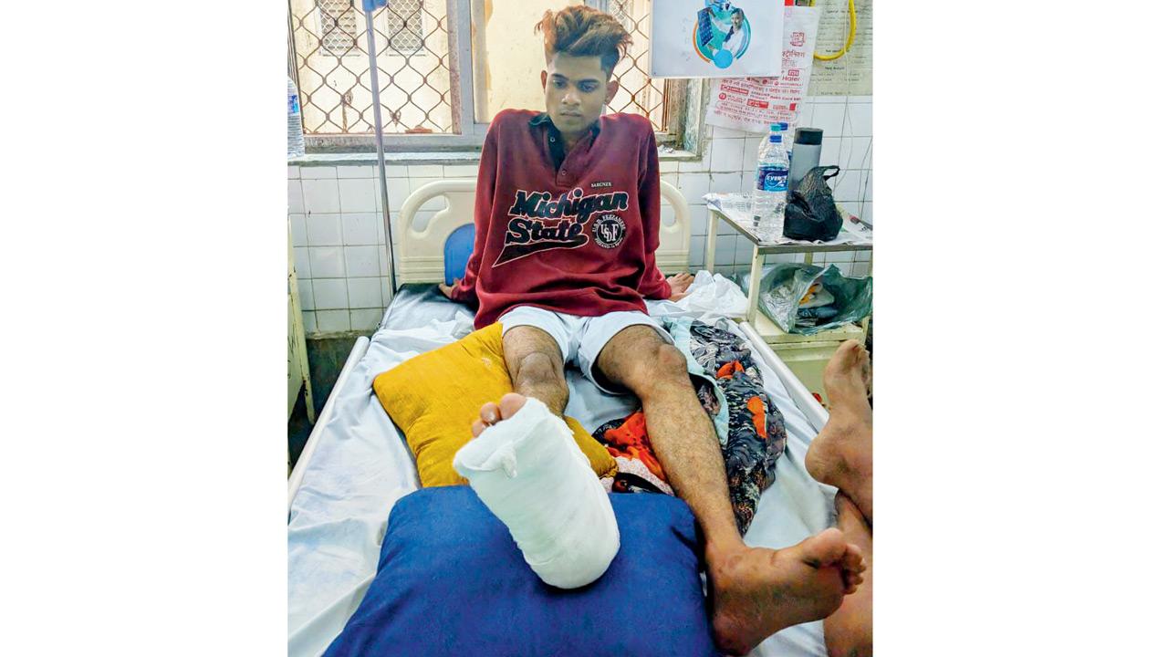 What happened: “It was raining, and the person bursting the handi slipped off my shoulder. I lost balance and fell, twisting my leg,” Jaiswal said. He lives with his parents and sister in Govandi.
