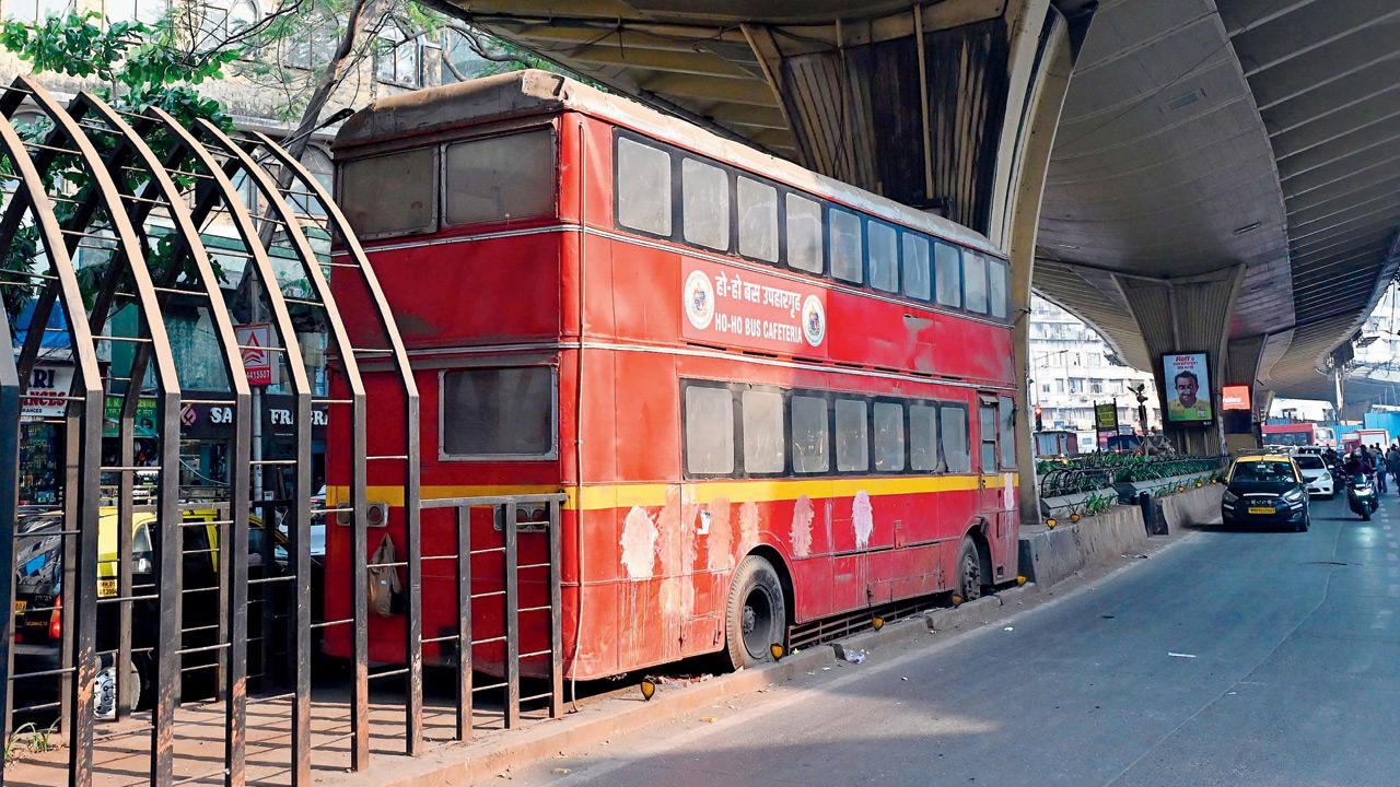 Iconic BEST double-decker parked near JJ Junction. Pics/Sayyed Sameer Abedi