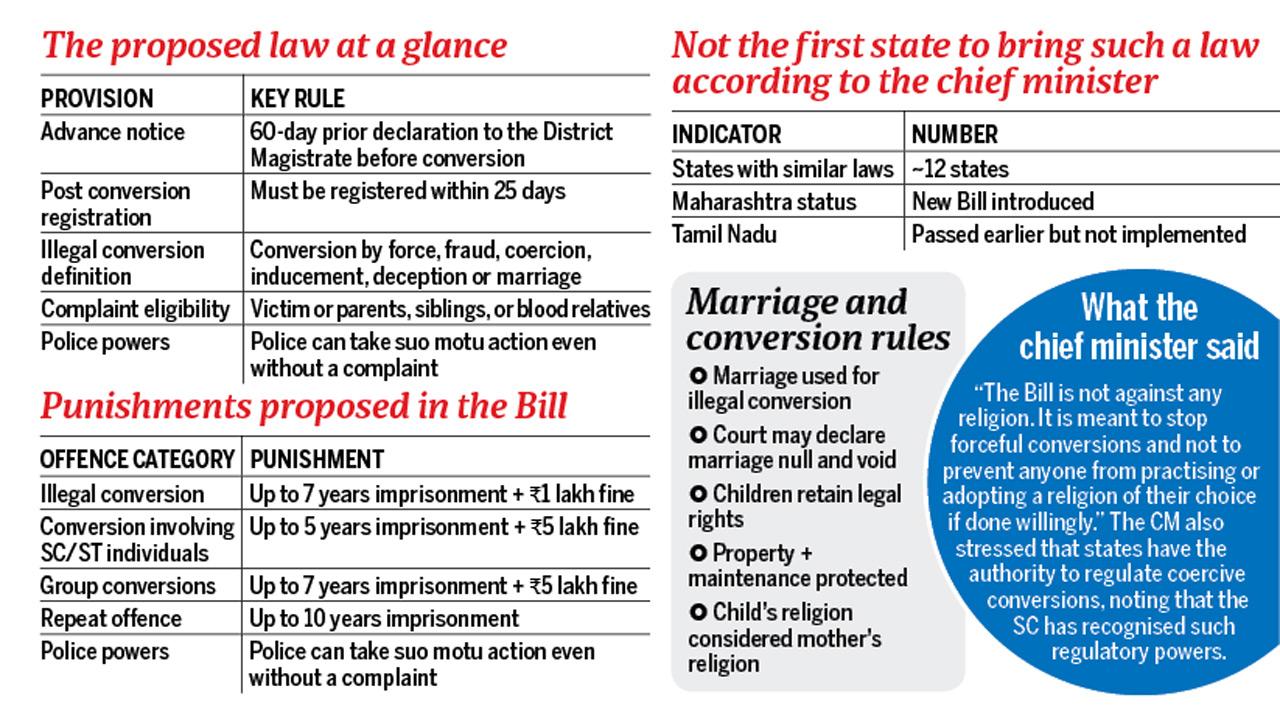 As Maharashtra passes its Freedom of Religion Bill, CM Devendra Fadnavis says the law targets forced conversions, not faith itself, proposing jail terms up to 10 years, advance conversion declarations and tighter overseeing even as the opposition splits over intent and possible misuse