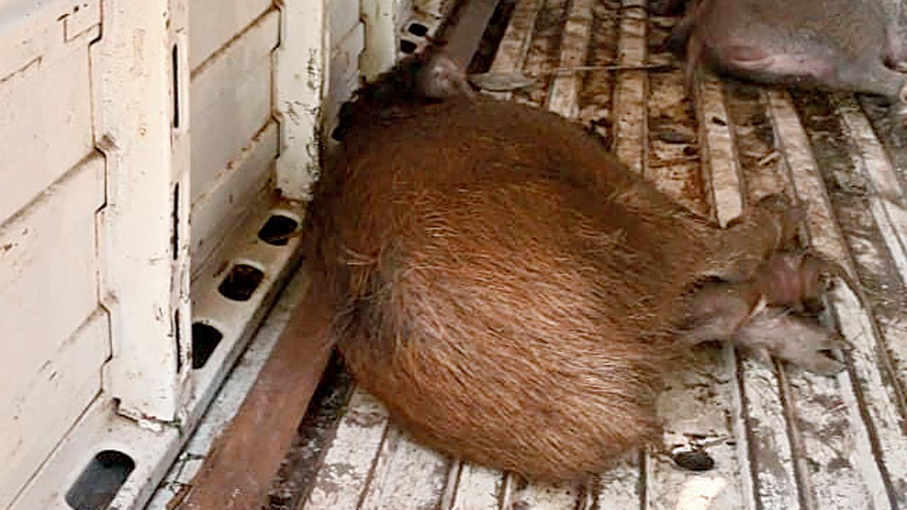 The wild boars were packed alive and ready for slaughter. Pics/By Special Arrangement