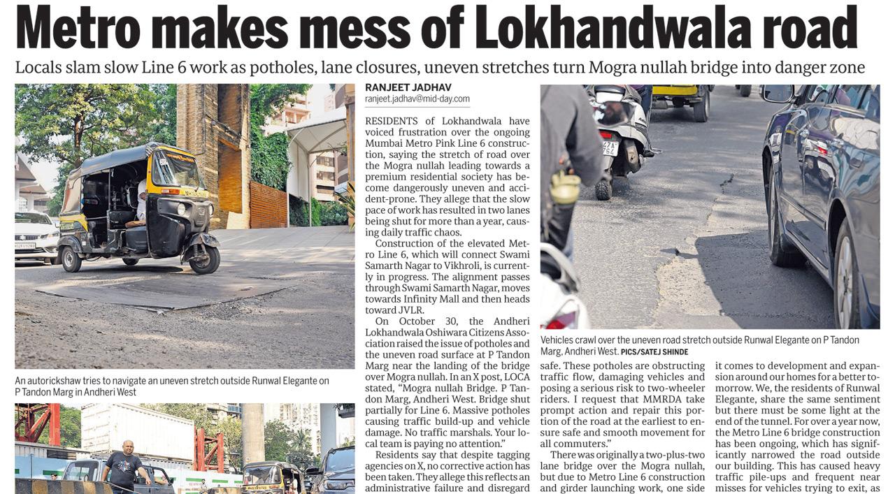 Ongoing Metro makes Lokhandwala road dangerous to walk on