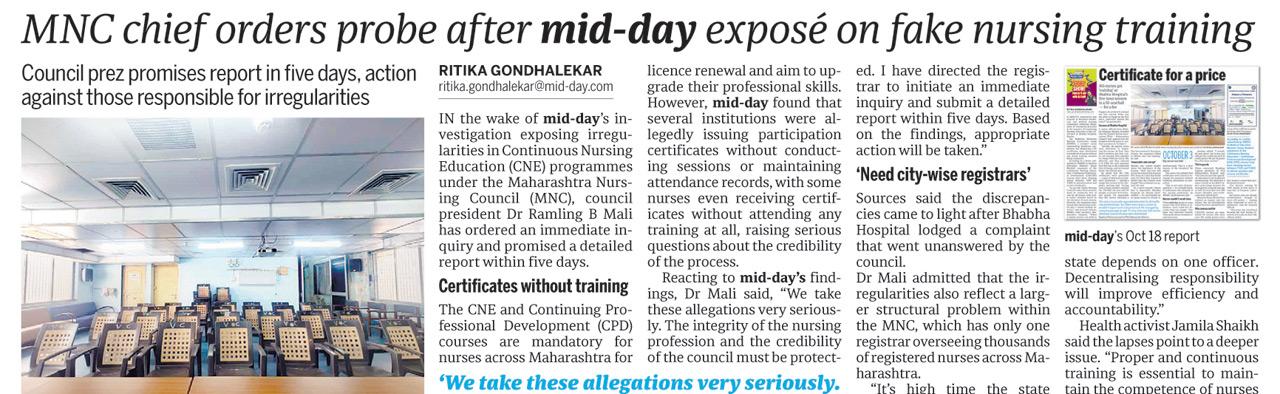 IMPACT: Maharashtra Nursing Council chief orders probe after mid-day expose