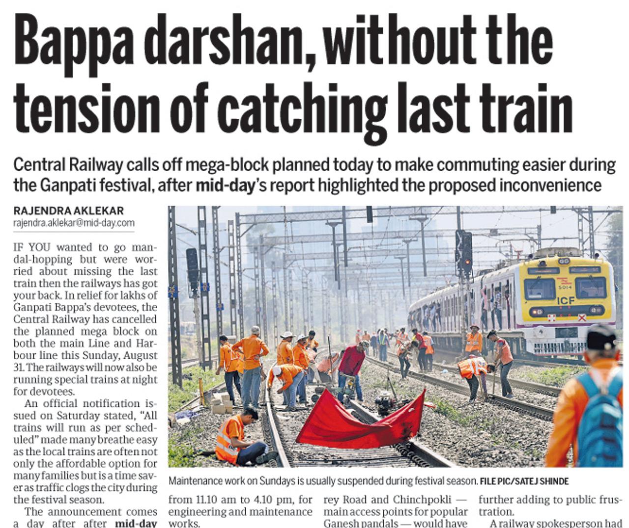 Impact: Railways removes block, organises all-night trains. In ‘Bappa darshan, without the tension of catching last train’