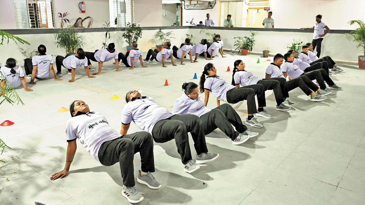 Coach Sunil Maurya said, “We are training the officers in a circuit-training workout style, which combines strength and cardio exercises. It involves short rest periods with high-intensity movements that target the whole body. This builds endurance, increases strength, and helps burn fat. Each participant performs multiple exercises in quick succession with very little rest, completing one full ‘circuit’ before repeating.”