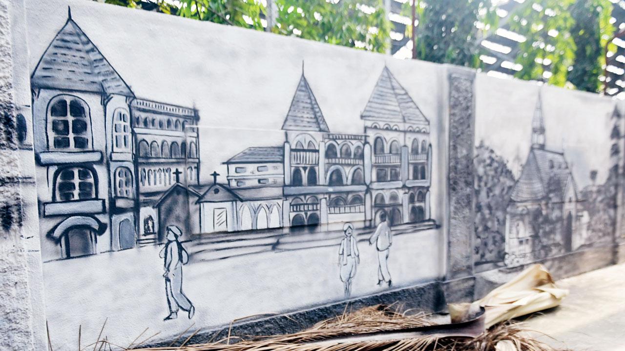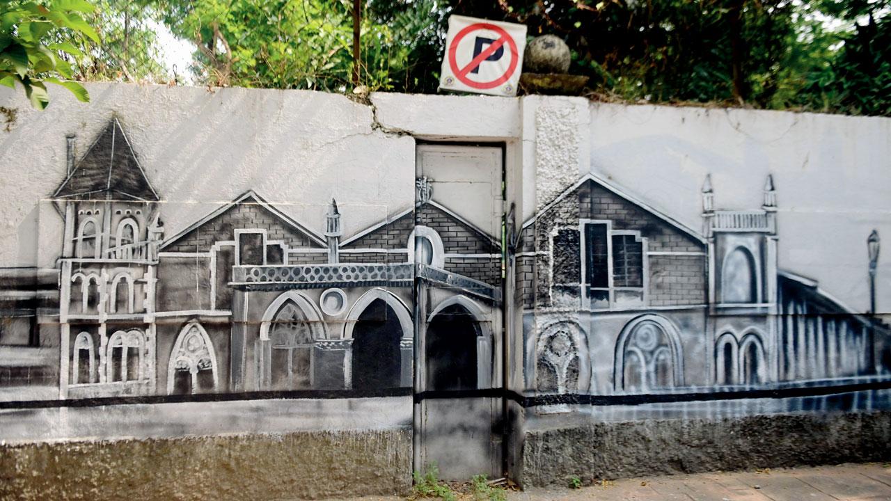 Bella Shah, a Colaba resident and part of My Dream Colaba (MDC), said, “This wall project began on October 24 and was completed this month. We have colour on walls everywhere, so we decided to do something different and conceptualised this in black‘n’white. South Mumbai means heritage buildings, and parts of it still have the old world charm clinging to them despite new construction. We decided that the wall must reflect that ethos.”